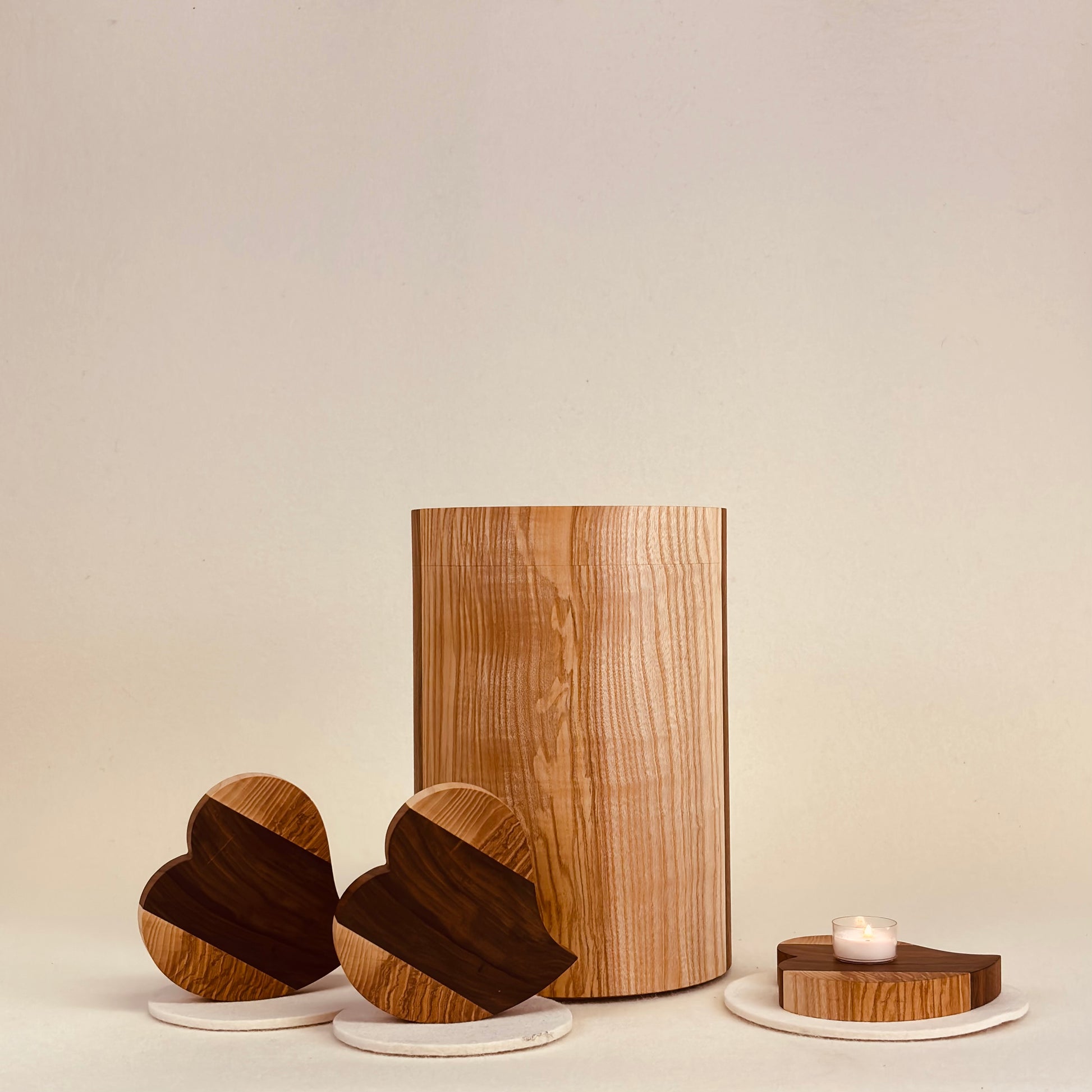 Meine handgefertigten Holzurnen bestehen aus 4 Elementen, die durch und durch natürlich und 100 % biologisch abbaubar sind: